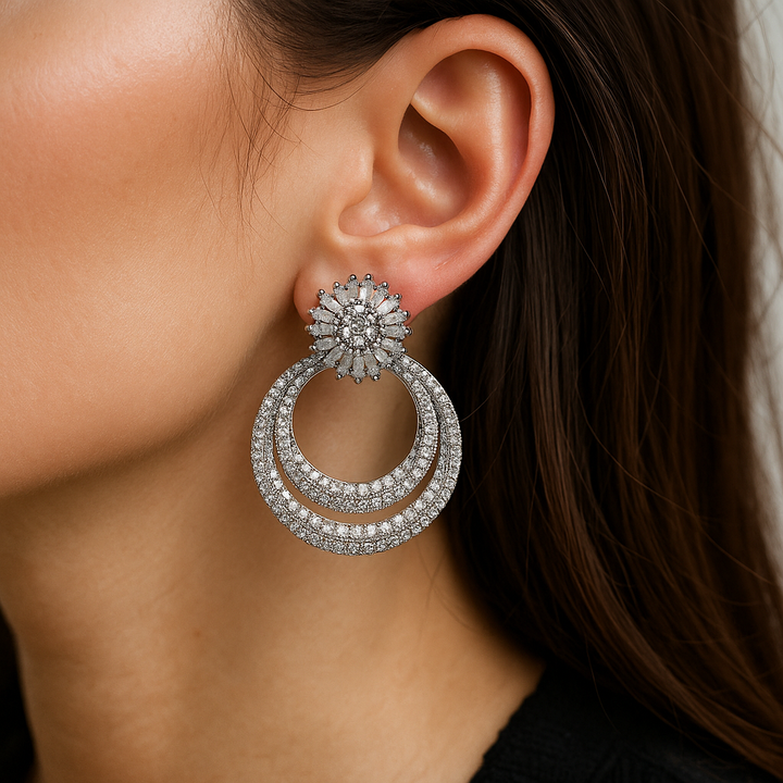 Shine like the sun with these Elegant Silver Tone Sunburst Earrings — a radiant accessory featuring a burst of textured silver rays. Ideal for adding an artistic touch to your look, these earrings pair well with both eastern and western attire.