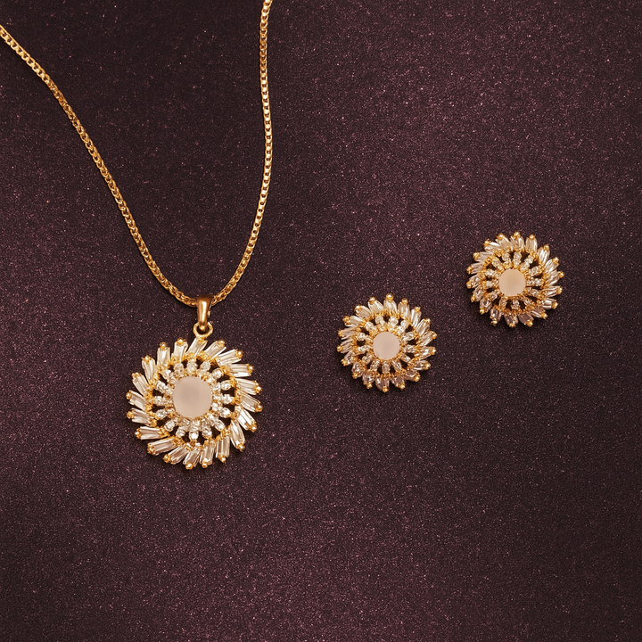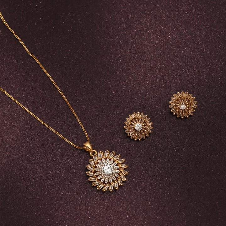 Golden Floral Necklace and Earrings Set For Girls and Women