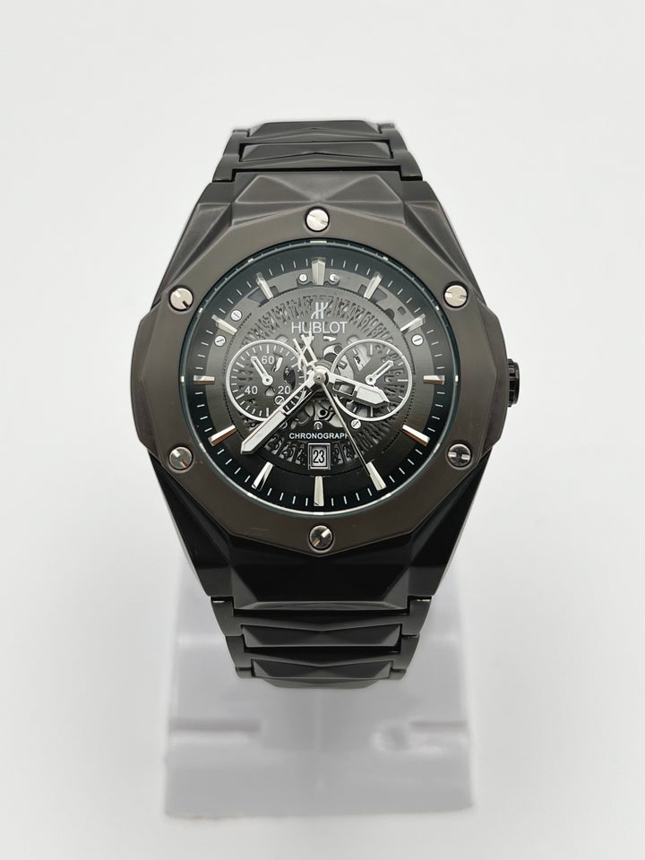 - Hublot Diamond Cut Watch with a Skeleton Dial