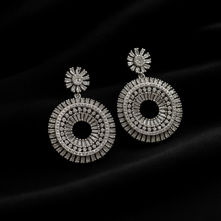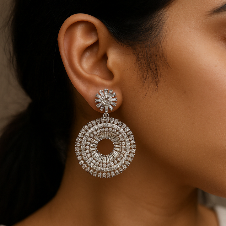 Stand out in style with these Luxury Crystal-Encrusted Layered Circle Earrings. Featuring two interconnected rings adorned with sparkling crystals, these earrings bring dimension and dazzle to any outfit.