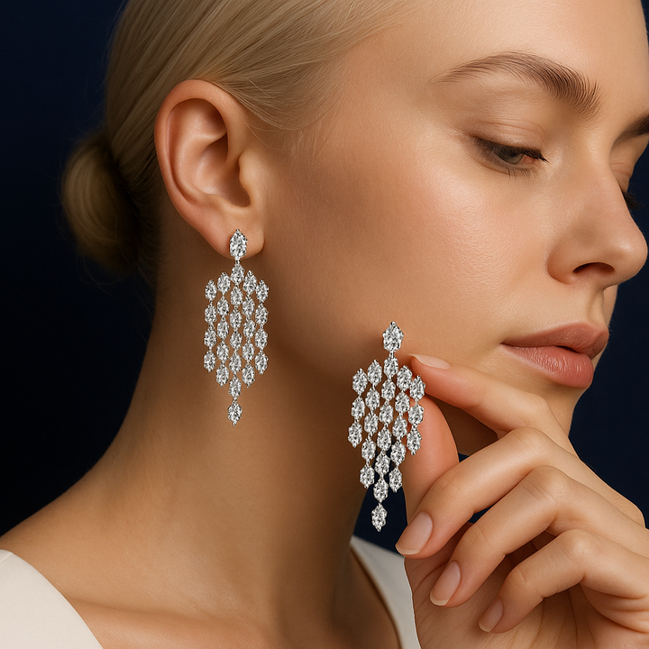 Pair these with updos or side-swept hairstyles to showcase their full charm. Whether you’re dressing up for a wedding or adding dazzle to a simple outfit, the Feather Inspired Crystal Earrings offer head-turning elegance.