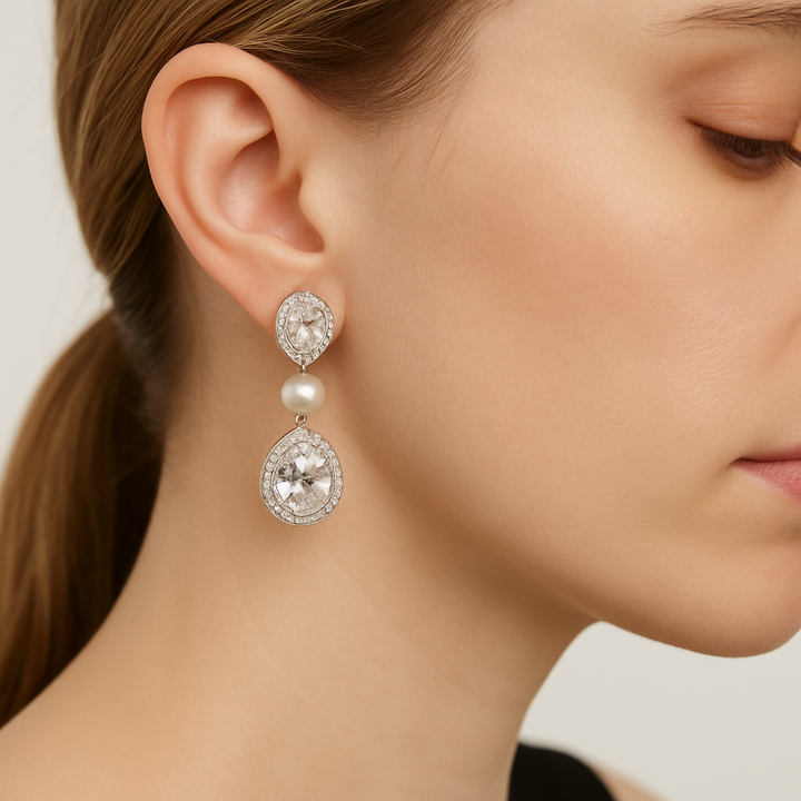 Luxury Pearl and Pave Earrings for Girls / Women