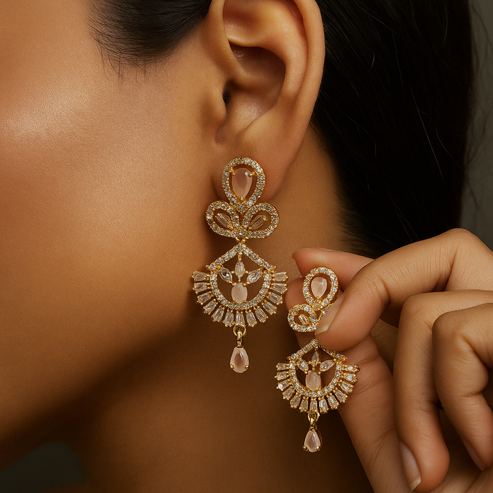 Ornate Gold and Pink Chandelier Earrings For Girls / Women